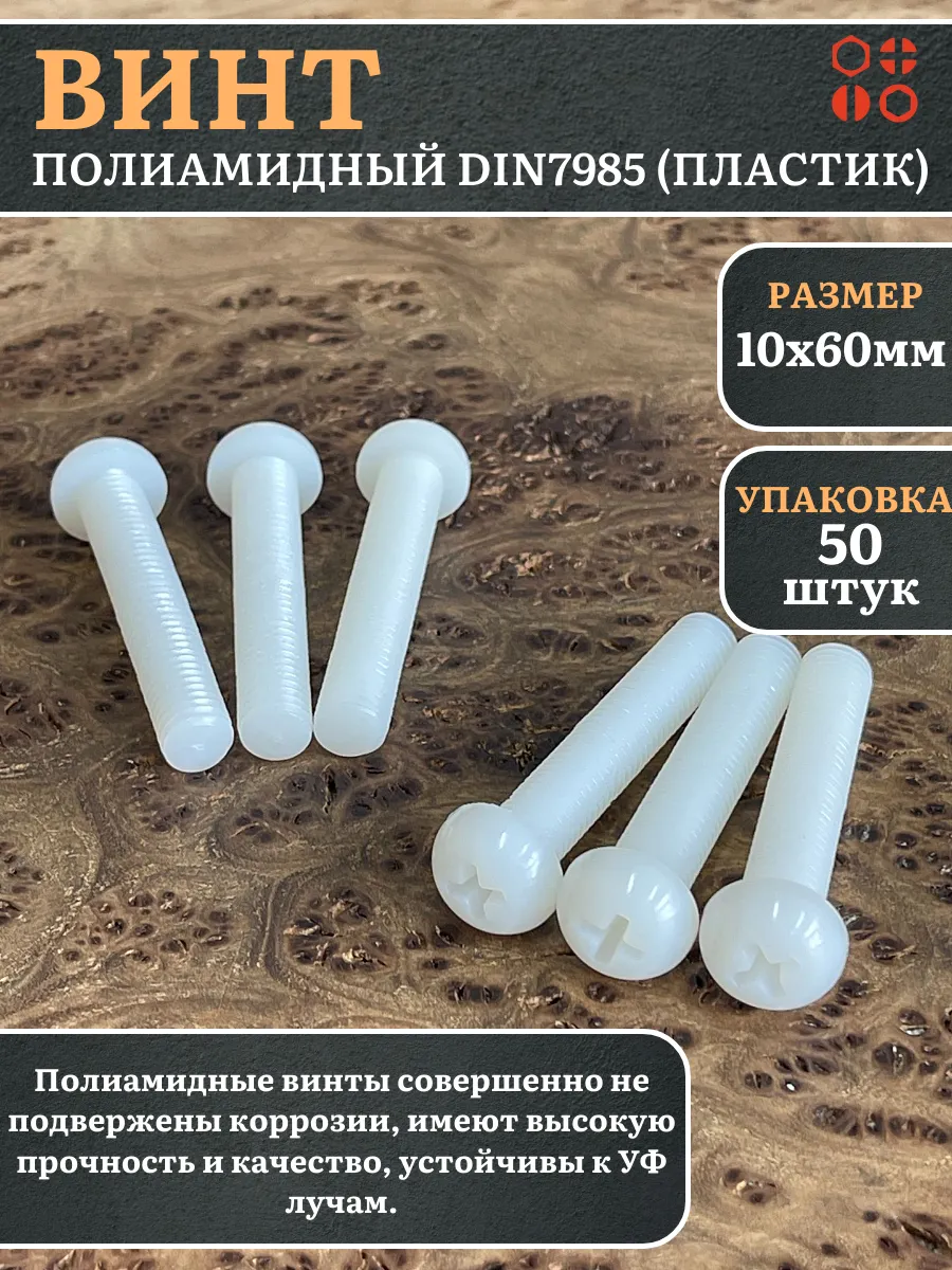 | Винт полиамидный 10х60 мм DIN7985 (пластик), 10 шт. | вп10607985ф10 | 1 шт. |