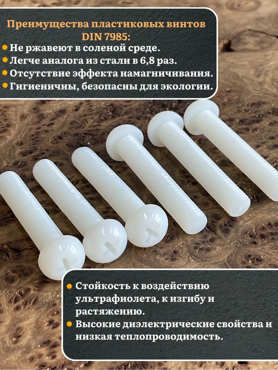 Винт полиамидный 10х60 мм DIN7985 (пластик), 50 шт.