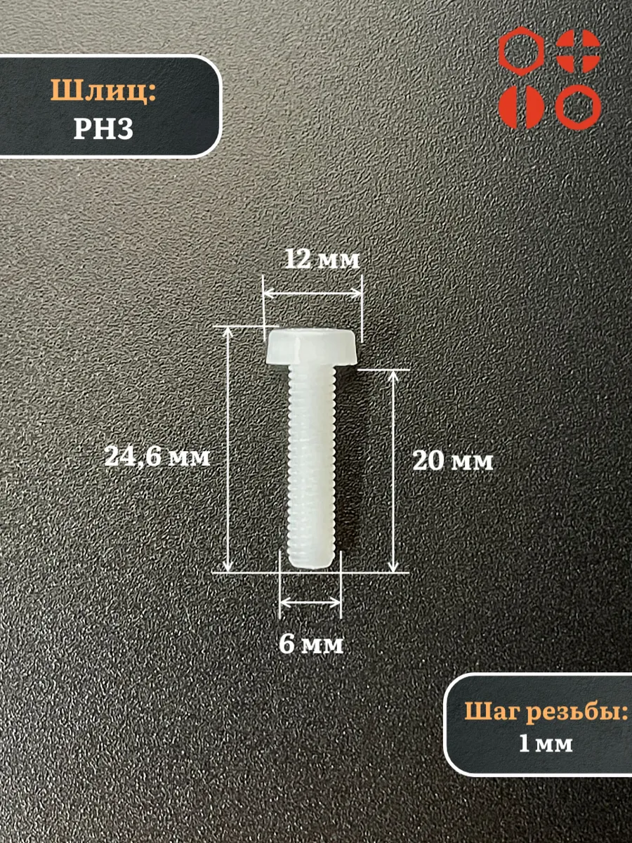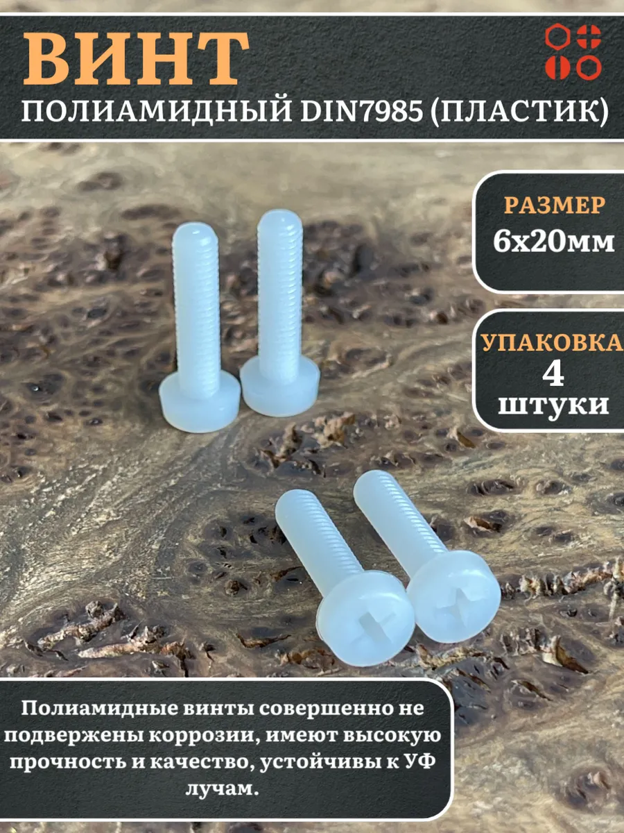 | Винт полиамидный 6х20 мм DIN7985 (пластик), 20 шт. | вп6207985ф20 | 1 шт. |