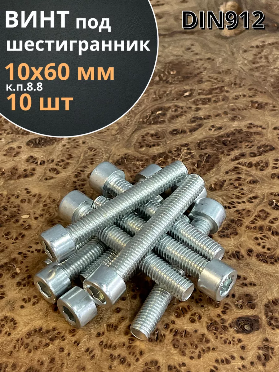 Винт под шестигранник ПР 10х60 мм ОЦ к.п.8.8 DIN912, 10 шт.