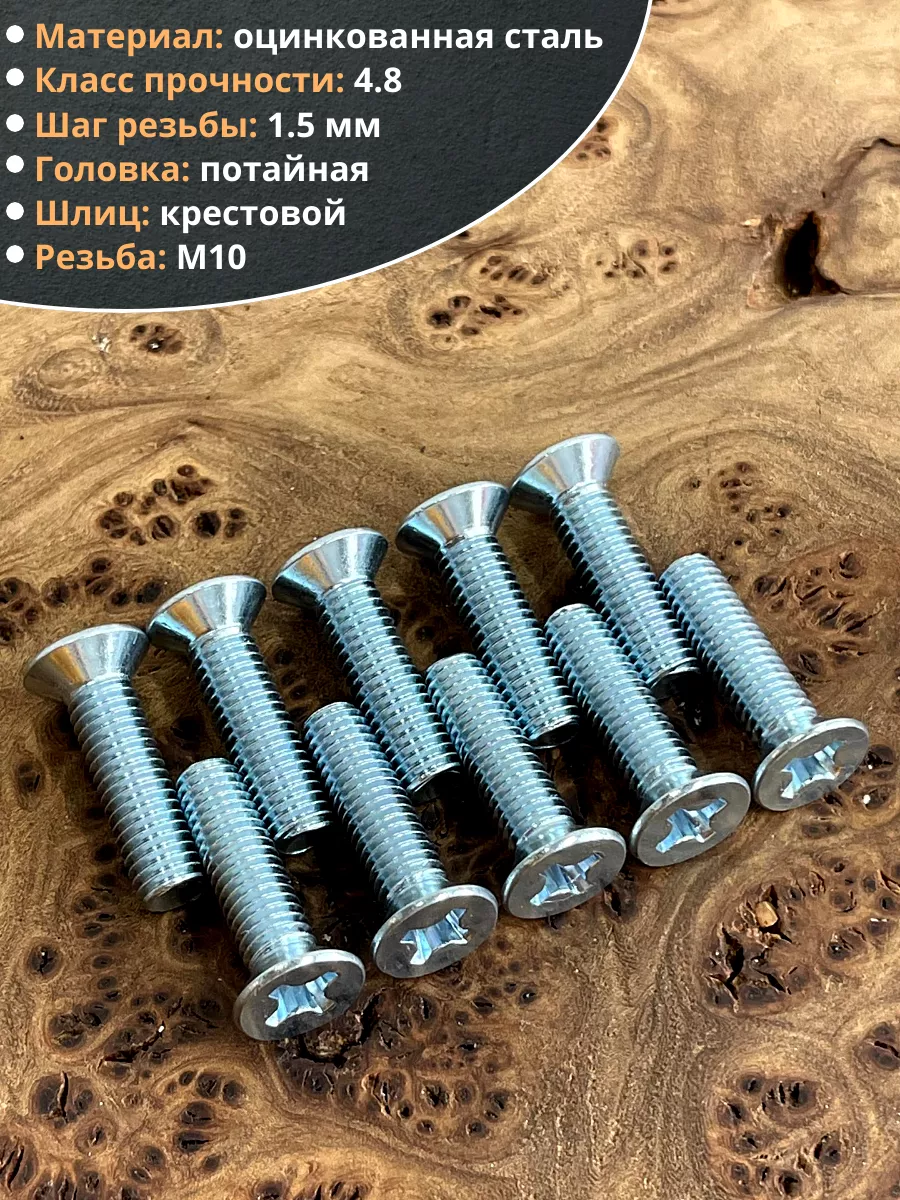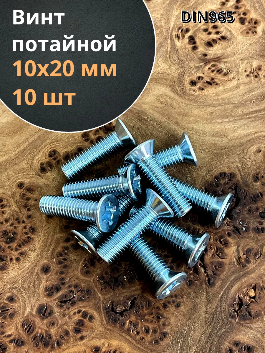 Винт потайной оцинкованный 10х20 DIN965, 10 шт.