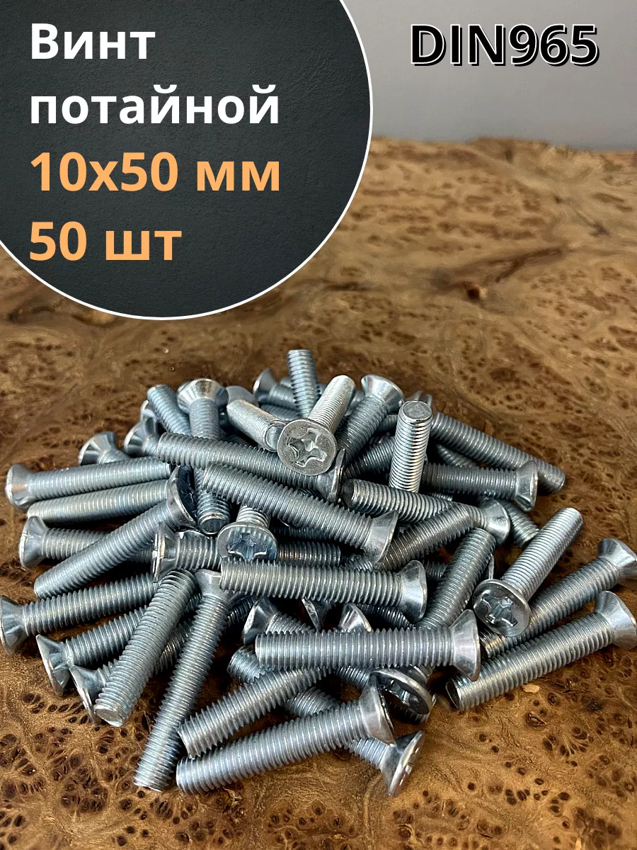 Винт потайной оцинкованный 10х50 DIN965, 50 шт.