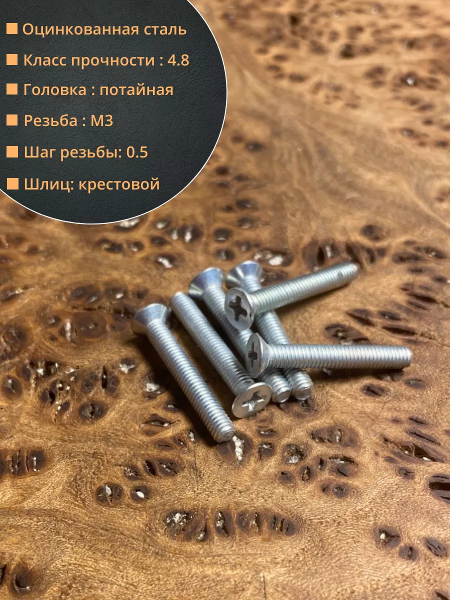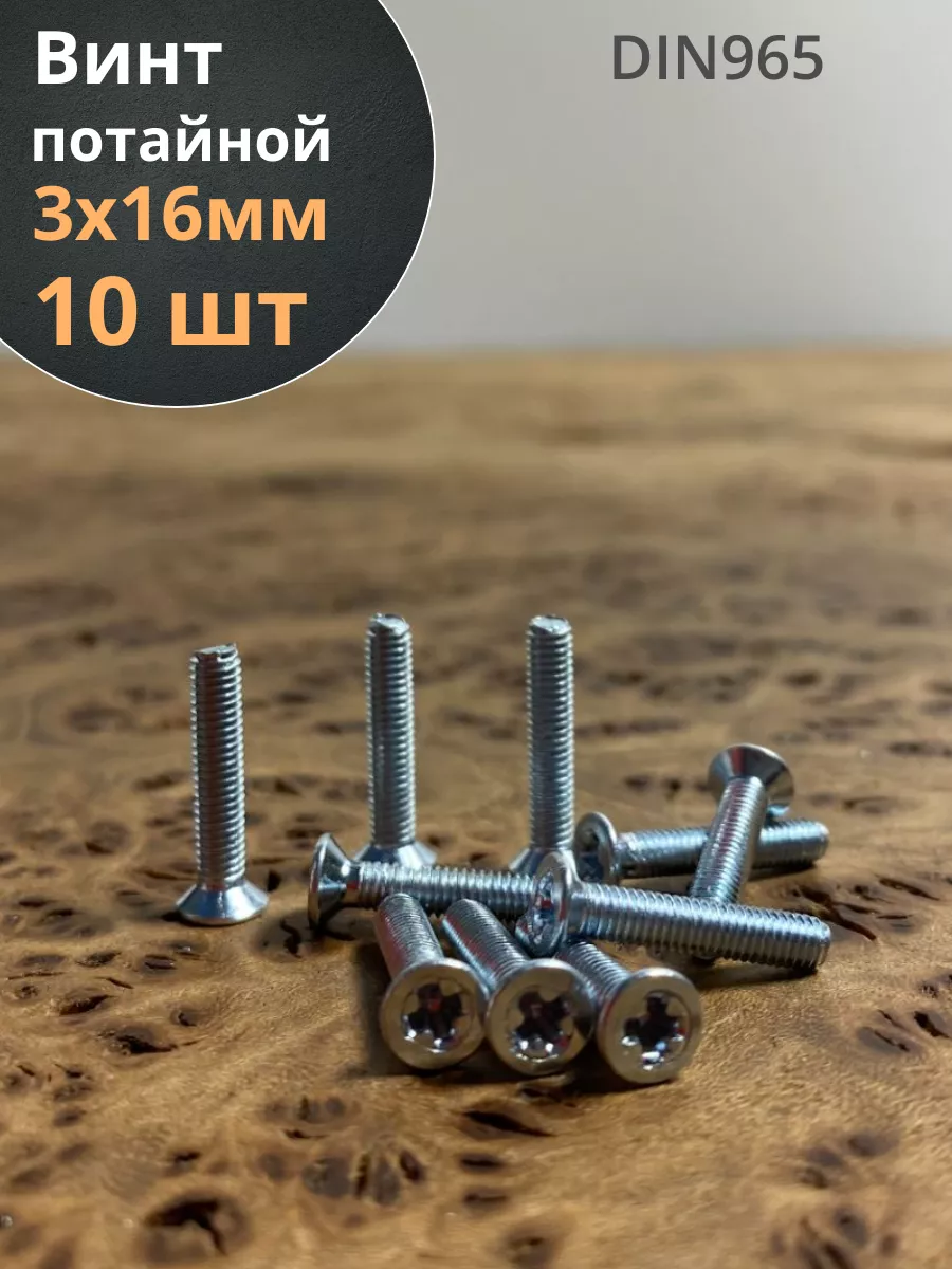 | Винт потайной оцинкованный 3х16 DIN965, 100 шт. | 22045 | 1 шт. |