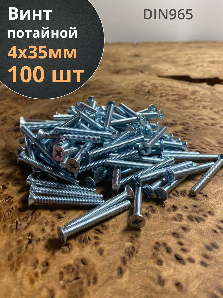 Винт потайной оцинкованный 4х35 DIN965, 100 шт.