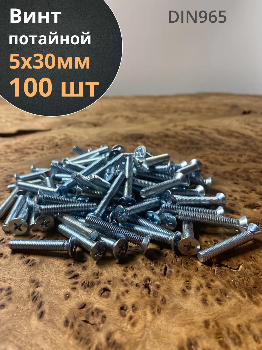Винт потайной оцинкованный 5х30 DIN965, 100 шт.