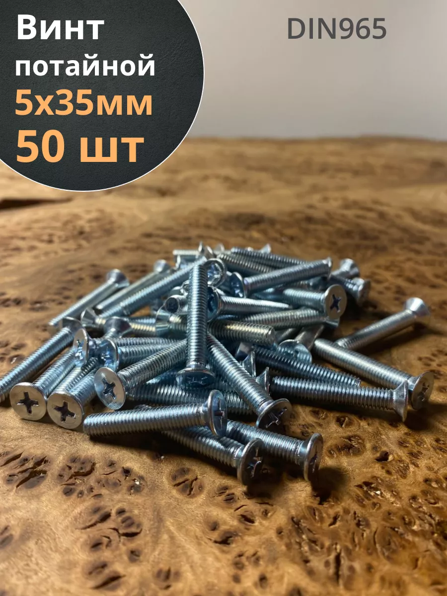 Винт потайной оцинкованный 5х35 DIN965, 50 шт.