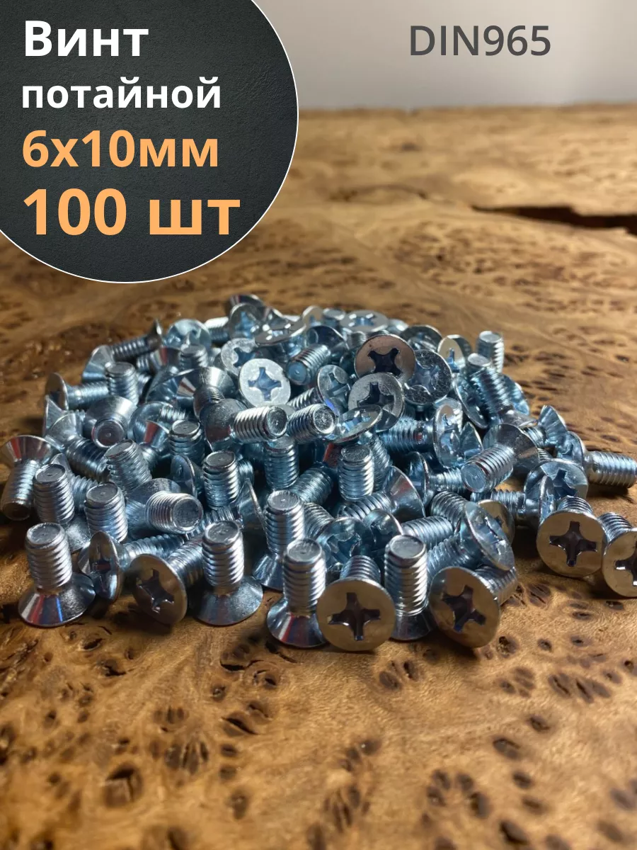 Винт потайной оцинкованный 6х10 DIN965, 100 шт.
