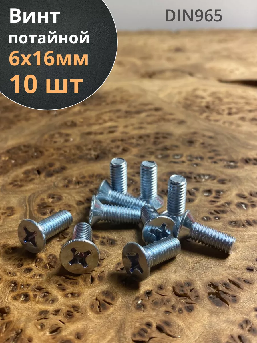 Винт потайной оцинкованный 6х16 DIN965, 10 шт.