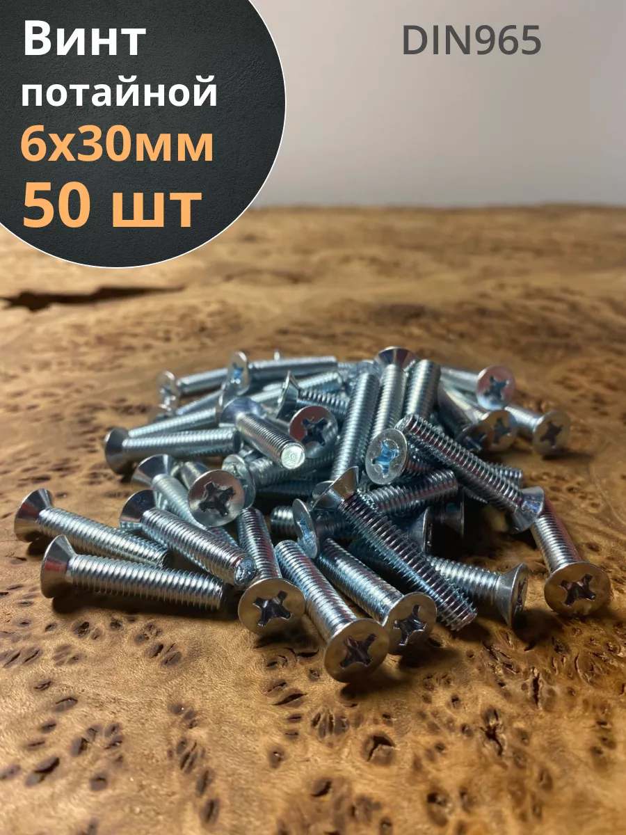 Винт потайной оцинкованный 6х30 DIN965, 50 шт.