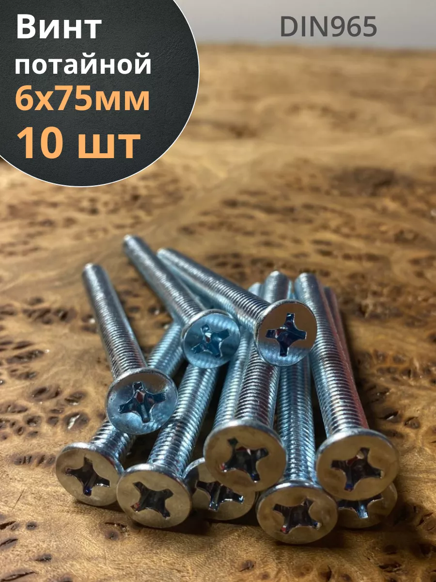 Винт потайной оцинкованный 6х75 DIN965, 10 шт.