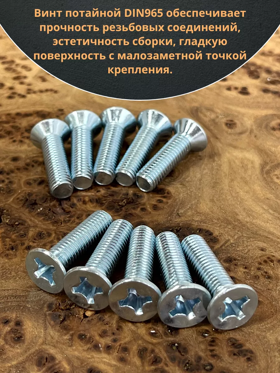 Винт потайной оцинкованный 8х20 DIN965, 10 шт.