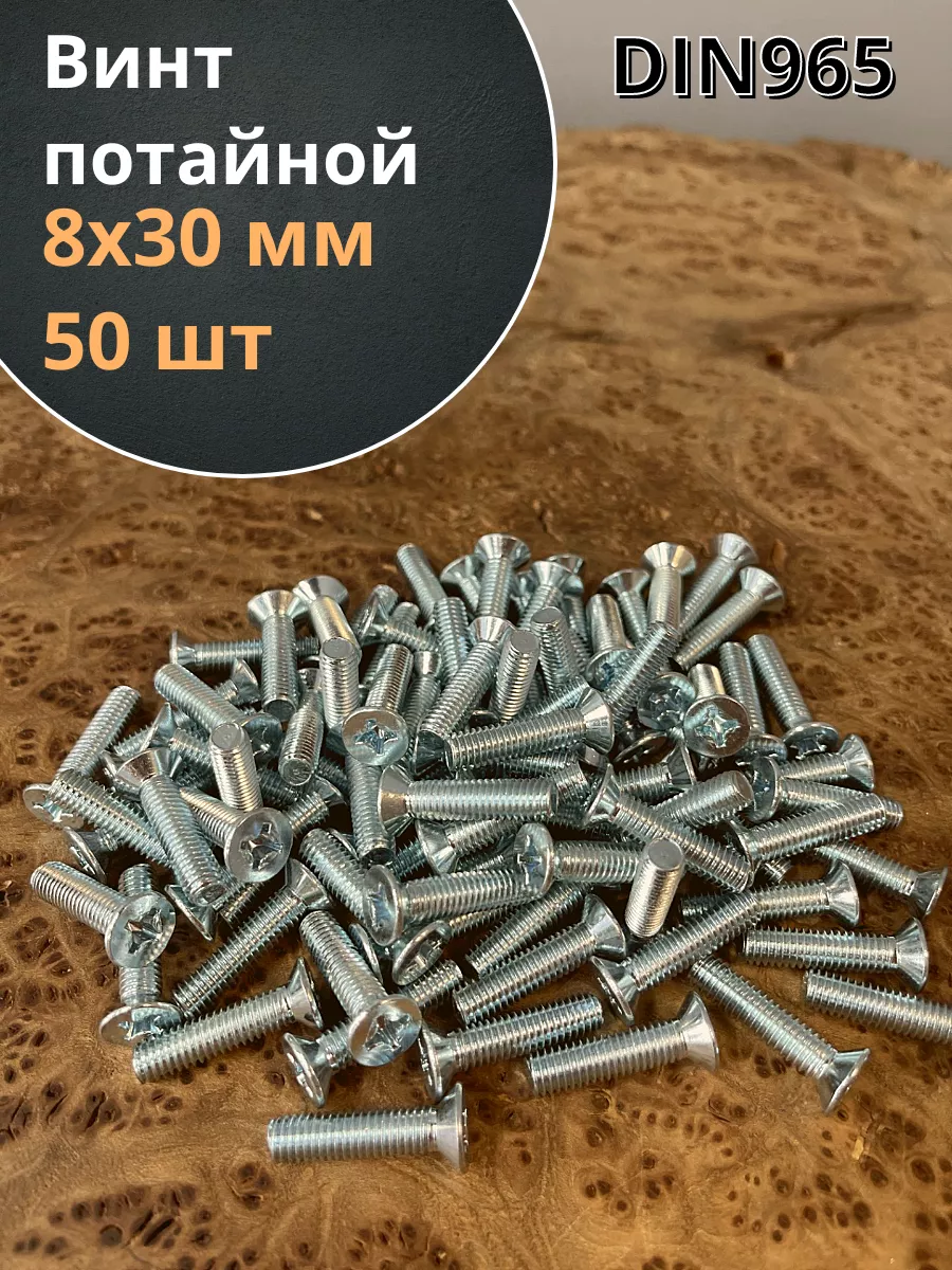 Винт потайной оцинкованный 8х30 DIN965, 50 шт.