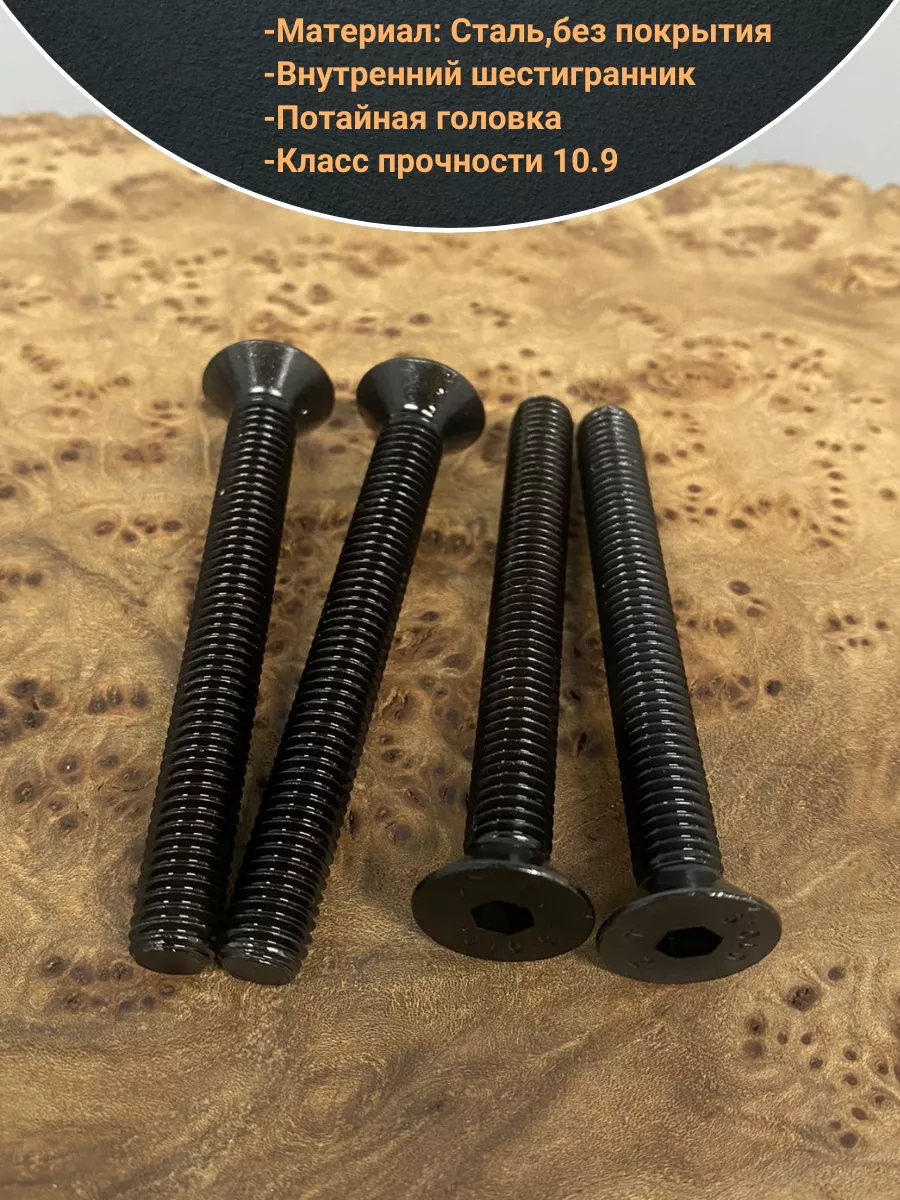 Винт потайной под шестигранник 10х60 DIN7991 к.п.10.9,10 шт.