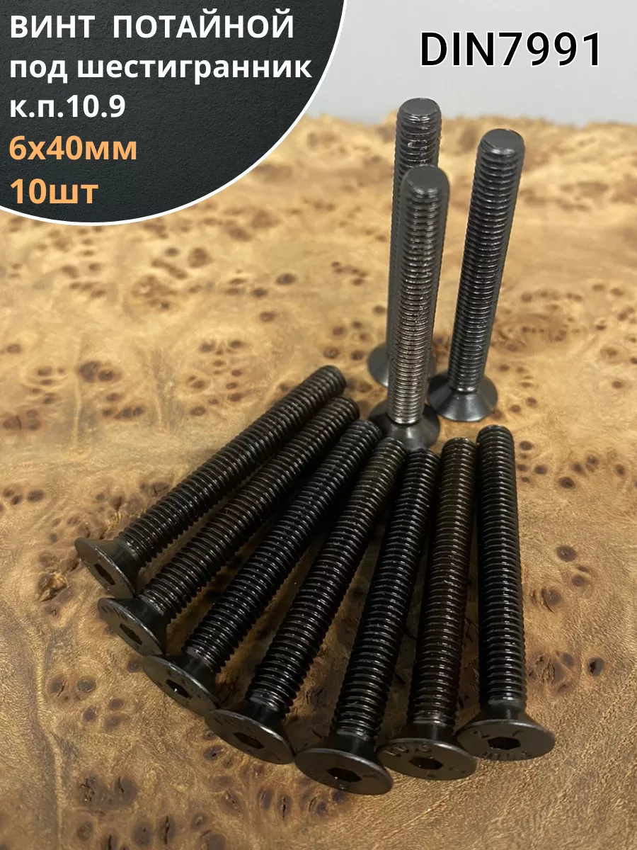 Винт потайной под шестигранник 6х40 DIN7991 к.п.10.9, 10 шт.