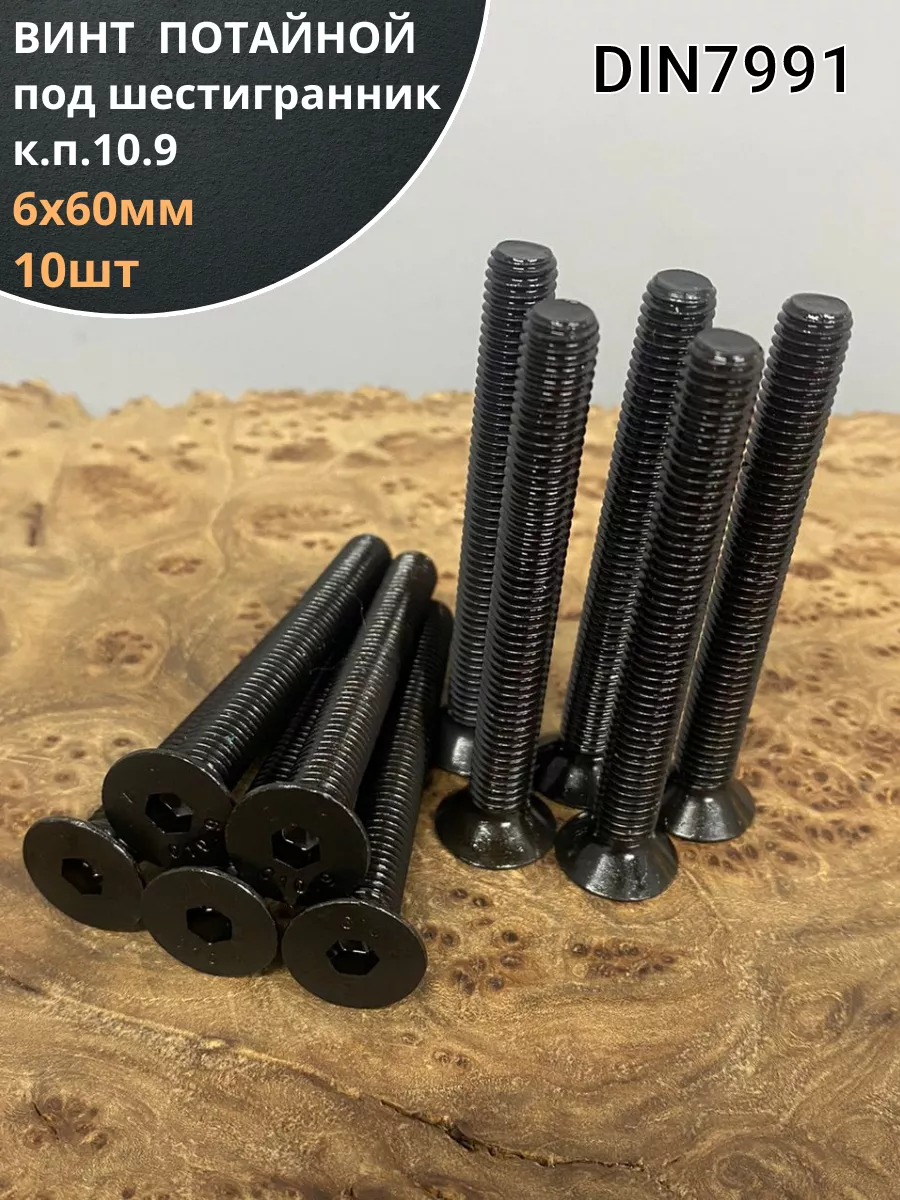 Винт потайной под шестигранник 6х60 DIN7991 к.п.10.9, 10 шт.