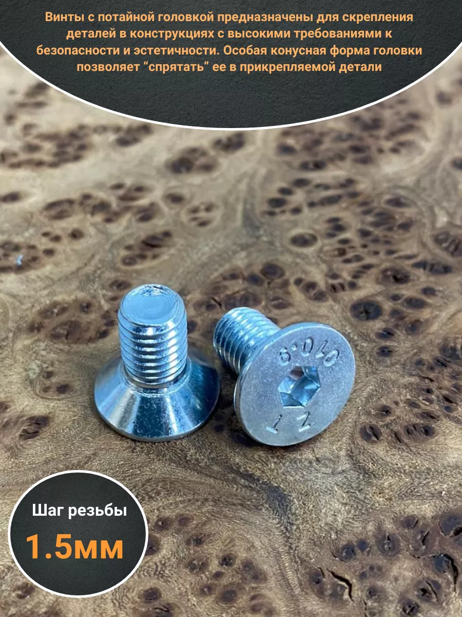 Винт потайной под шестигранник ОЦ М10х20 DIN7991к.п.10.9,10шт