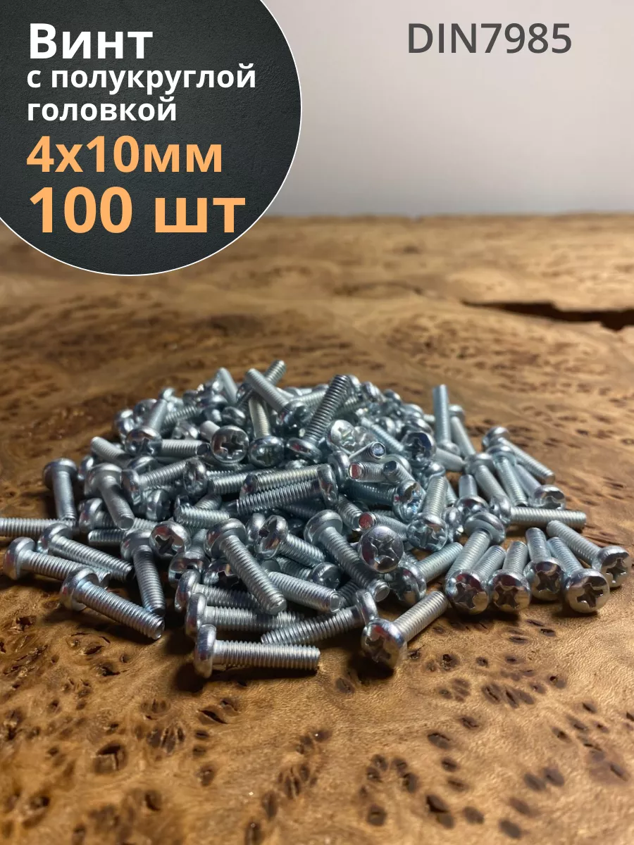 Винт с полукруглой головкой М4х10 ОЦ DIN7985 , 100 шт.