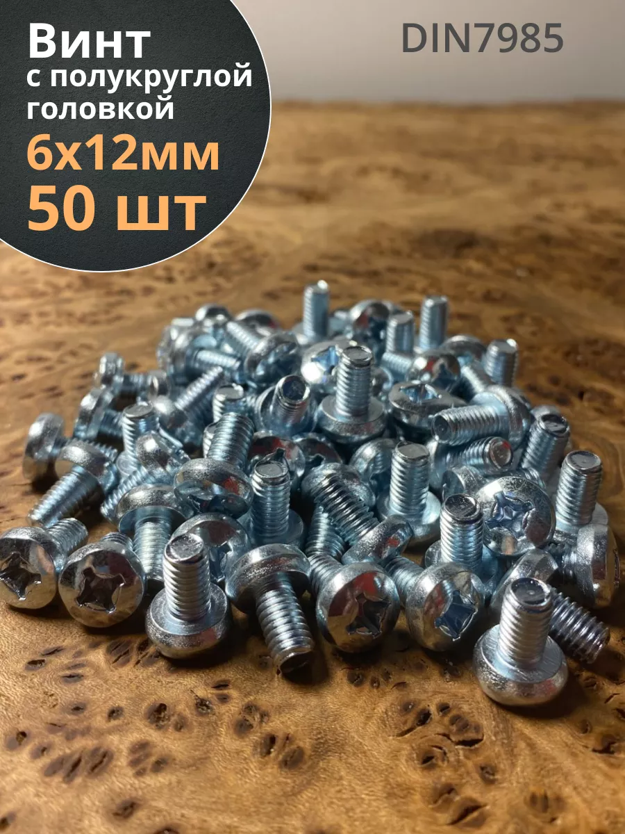 Винт с полукруглой головкой М6х12 ОЦ DIN7985, 50 шт.