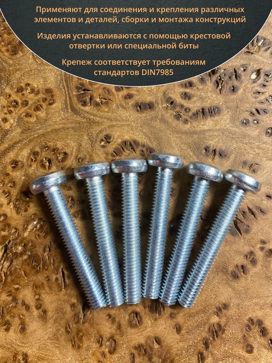 | Винт с полукруглой головкой М6х40 ОЦ DIN7985, 100 шт. | 22144 | 1 шт. |