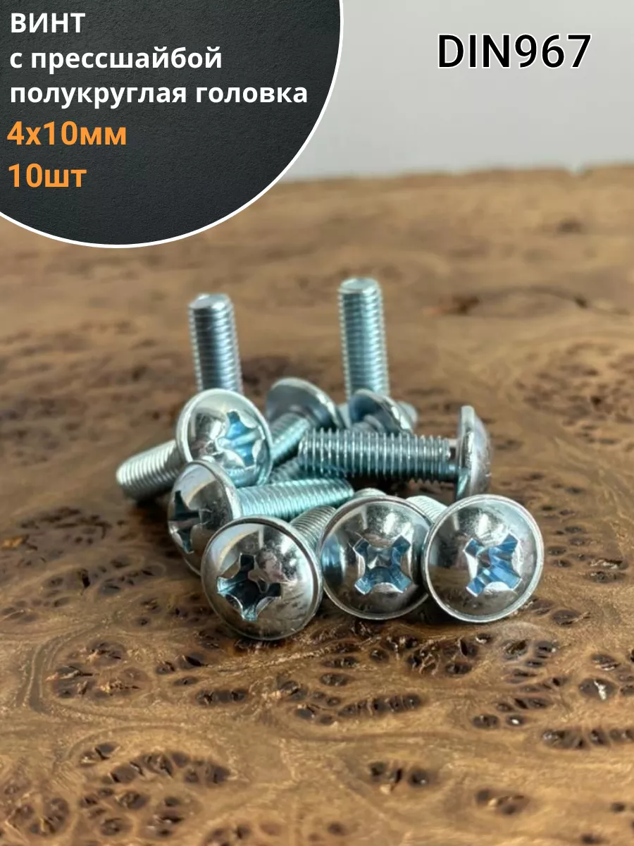 | Винт с прессшайбой М4х10 полукруглая головка DIN967, 50 шт. | вм410фф50 | 1 шт. |