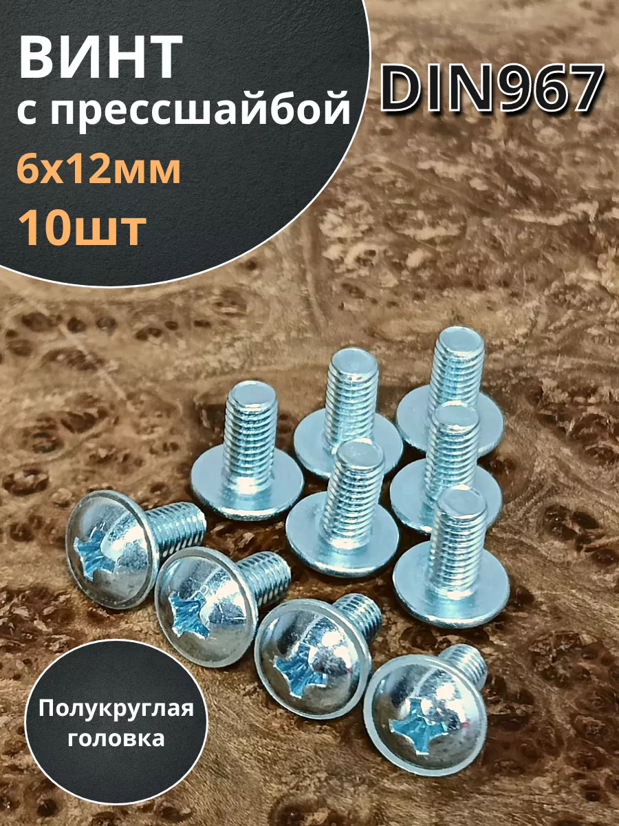 Винт с прессшайбой М6х12 полукруглая головка DIN967, 10 шт.