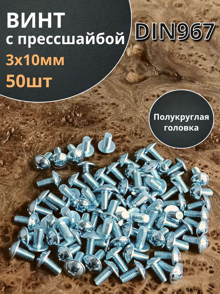 | Винт с прессшайбой М3х10 мебельный DIN967 ,10 шт. | вп310 | 1 шт. |