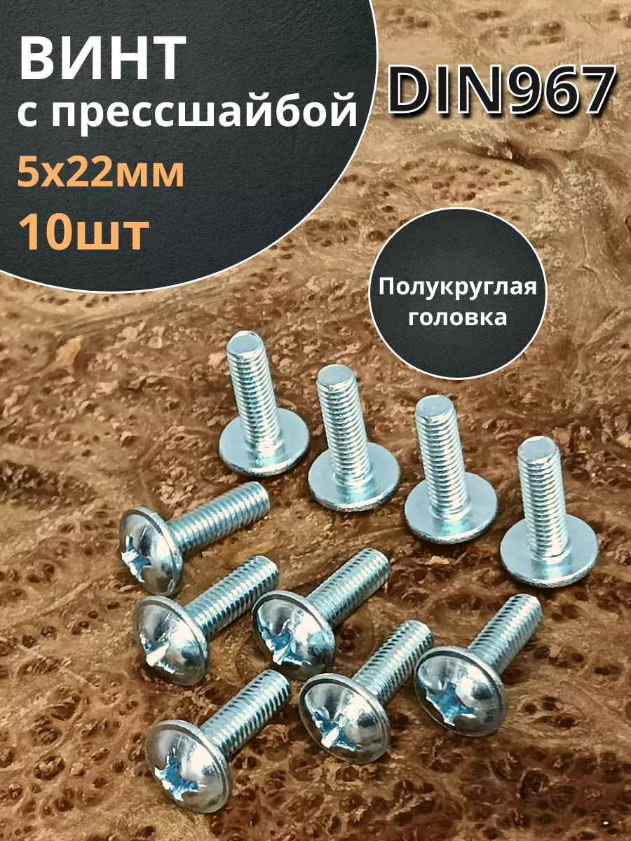 Винт с прессшайбой М5х22 полукруглая головка DIN967, 10 шт.
