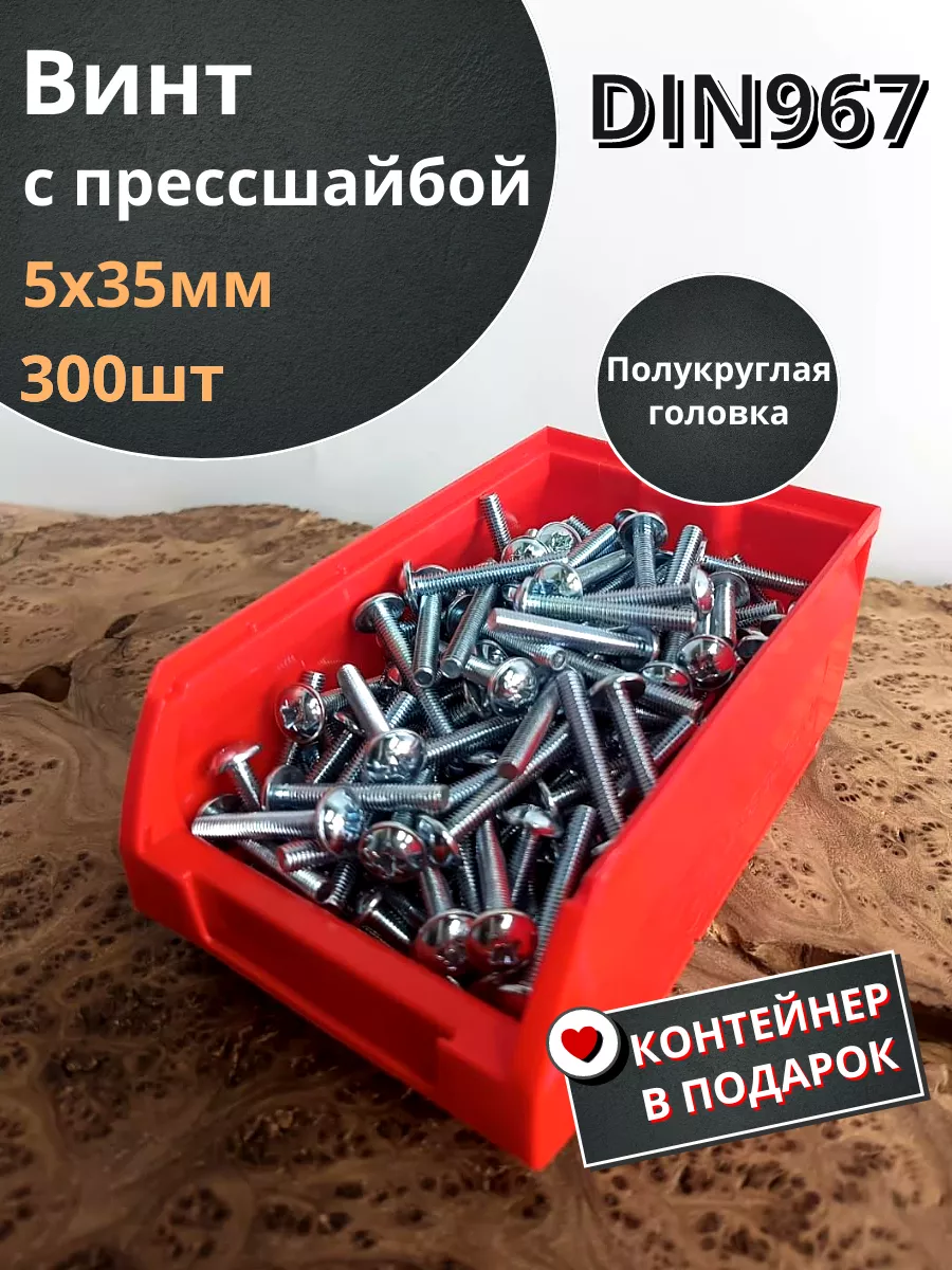 Винт с прессшайбой М5х35 DIN967, 300 шт. в контейнере