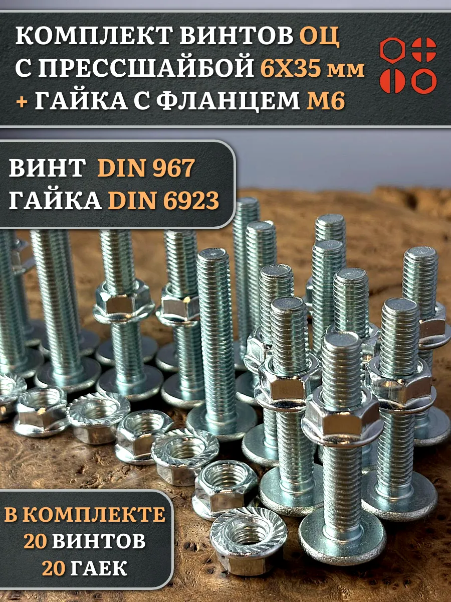 Винт с прессшайбой М6х35 DIN967 с гайкой фланец, 20 шт.