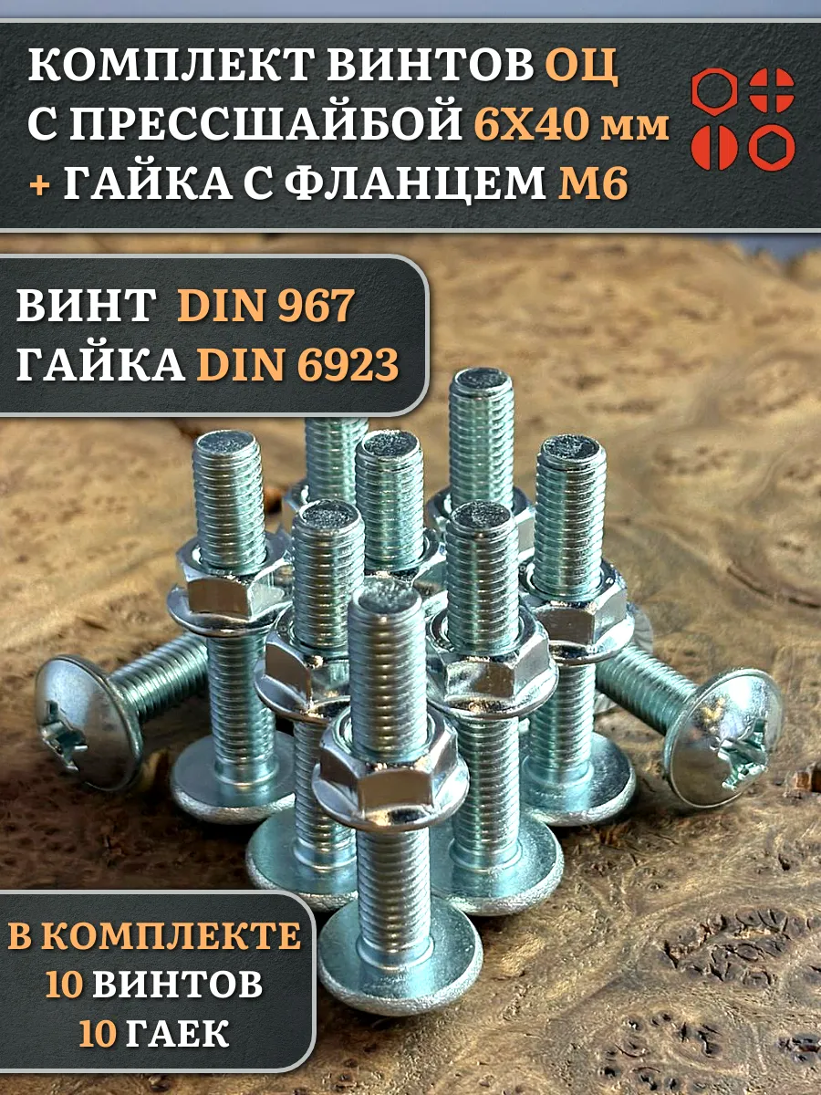 Винт с прессшайбой М6х40 DIN967 с гайкой фланец, 10 шт.