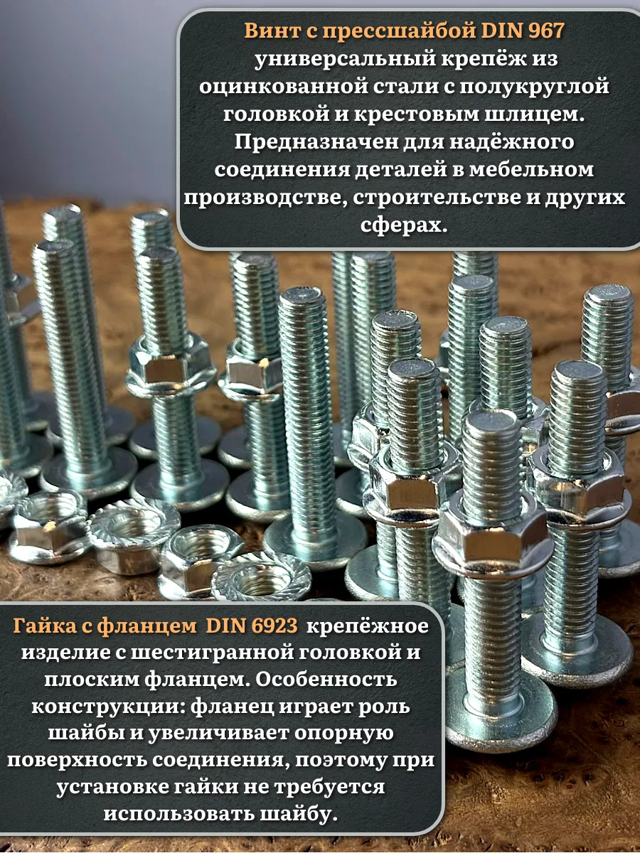 Винт с прессшайбой М6х50 DIN967 с гайкой фланец, 10 шт.