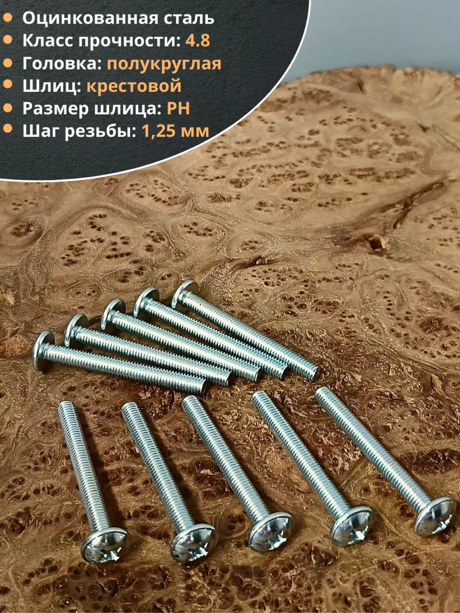 Винт с прессшайбой М8х55 мебельный DIN967, 10 шт.