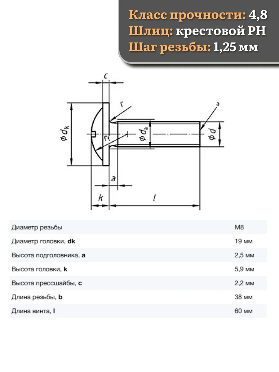 Винт с прессшайбой М8х60 DIN967 с гайкой фланец, 10 шт.