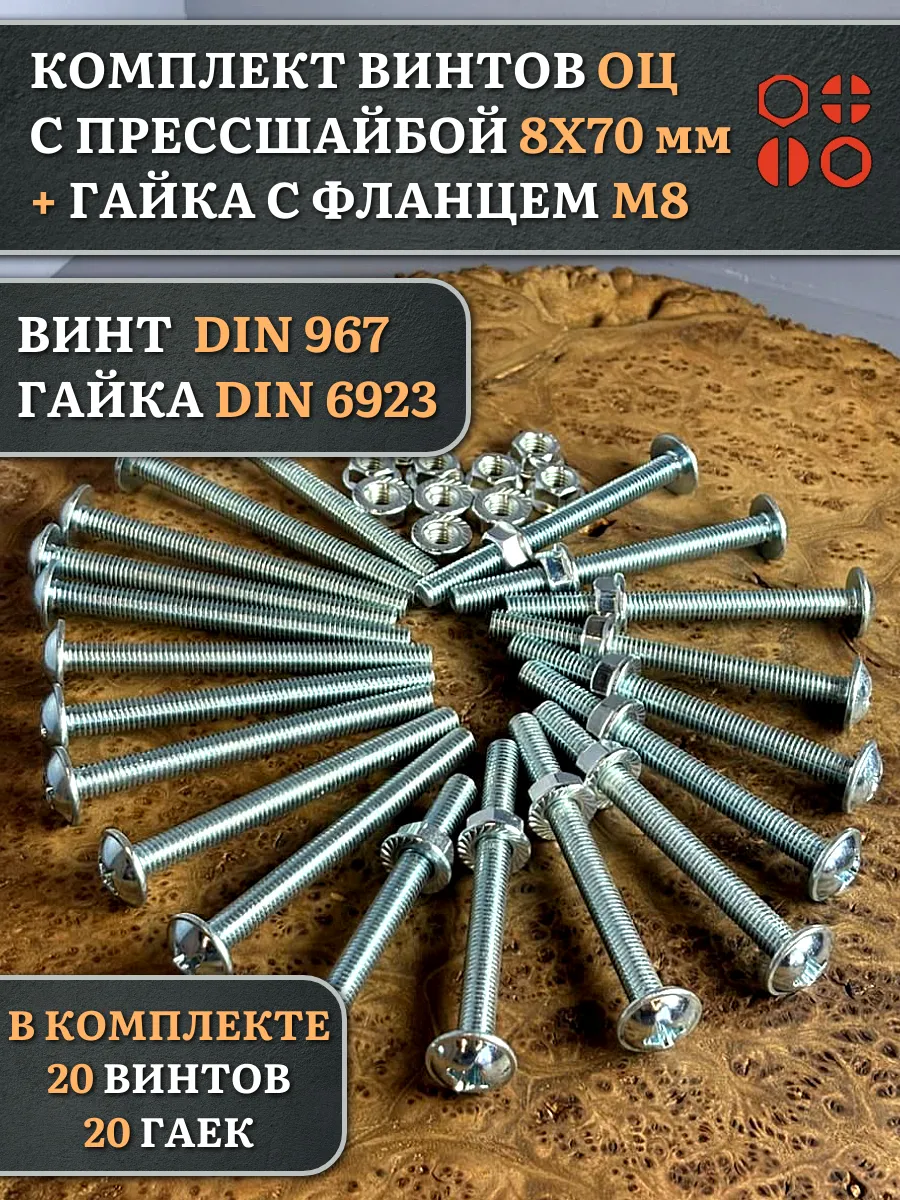 Винт с прессшайбой М8х70 DIN967 с гайкой фланец, 10 шт.