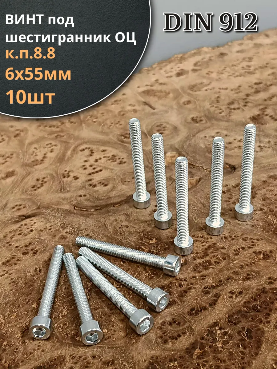 Винт под шестигранник ПР 6х55 мм ОЦ к.п.8.8 DIN912, 10 шт.