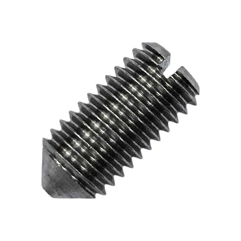 Установочный острый винт DIN 553 (ISO 7434) — это полнорезьбовой винт без головки с коническим концом и шлицем на торце под плоскую отвёртку. Он предназначен для скрепления элементов конструкции и их надёжной фиксации друг относительно друга. Винт обладает высокой вращающей и осевой удерживающей способностью.