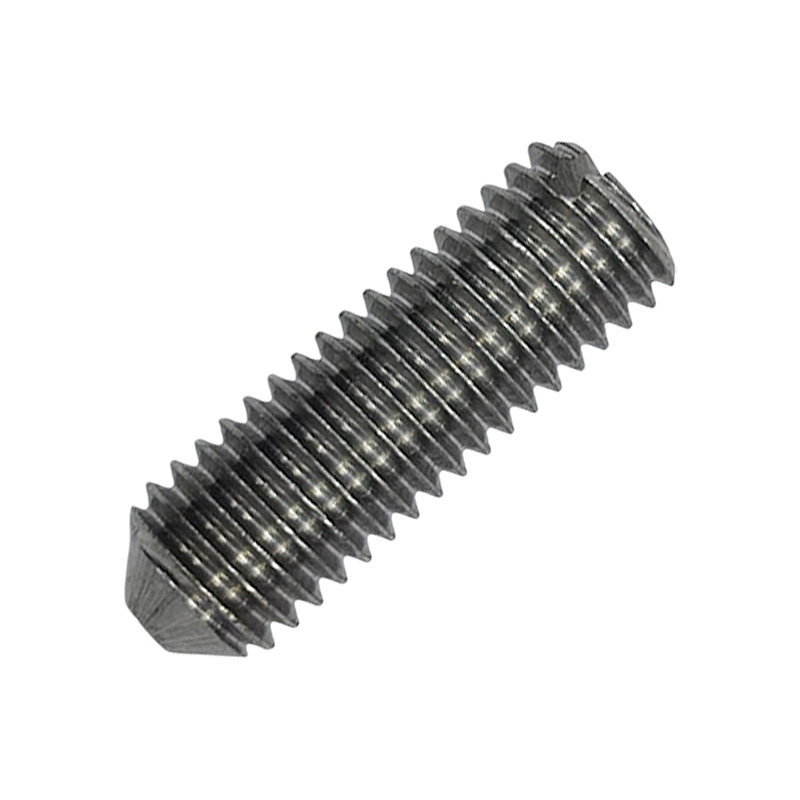 Стопорный винт с коническим концом и прямым шлицем предназначен для создания соединений, которые не работают на растяжение. Он широко используется в машиностроении и приборостроении для фиксации шестерёнок, подшипников, колец, втулок на валах.