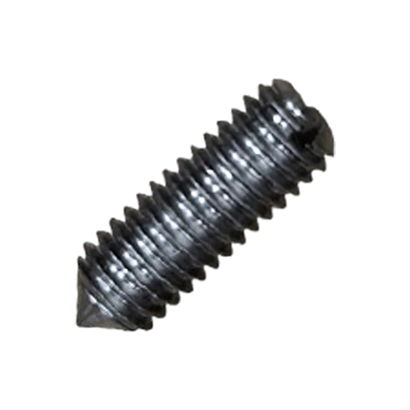 Стопорный винт с коническим концом и прямым шлицем предназначен для создания соединений, которые не работают на растяжение. Он широко используется в машиностроении и приборостроении для фиксации шестерёнок, подшипников, колец, втулок на валах.