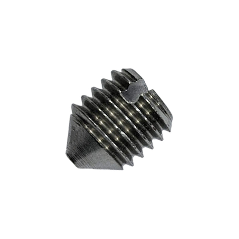 Стопорный винт с коническим концом и прямым шлицем предназначен для создания соединений, которые не работают на растяжение. Он широко используется в машиностроении и приборостроении для фиксации шестерёнок, подшипников, колец, втулок на валах.