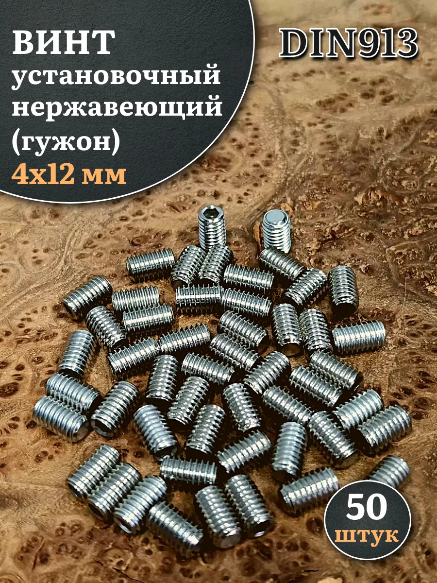 Винт установочный нержавеющий М4х12 DIN913 (гужон), 50 шт.