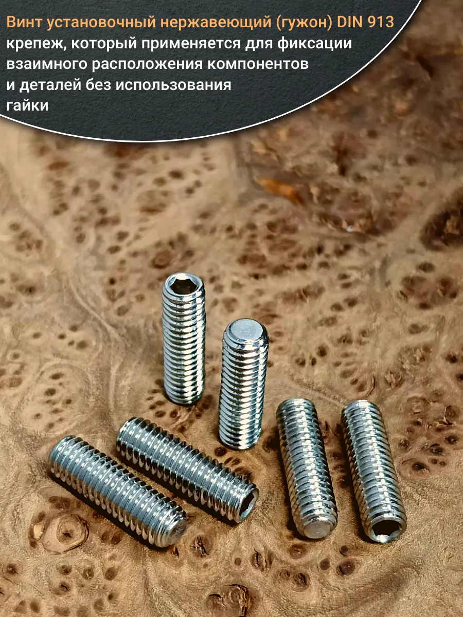 Винт установочный нержавеющий М6х16 DIN913 (гужон), 10 шт.