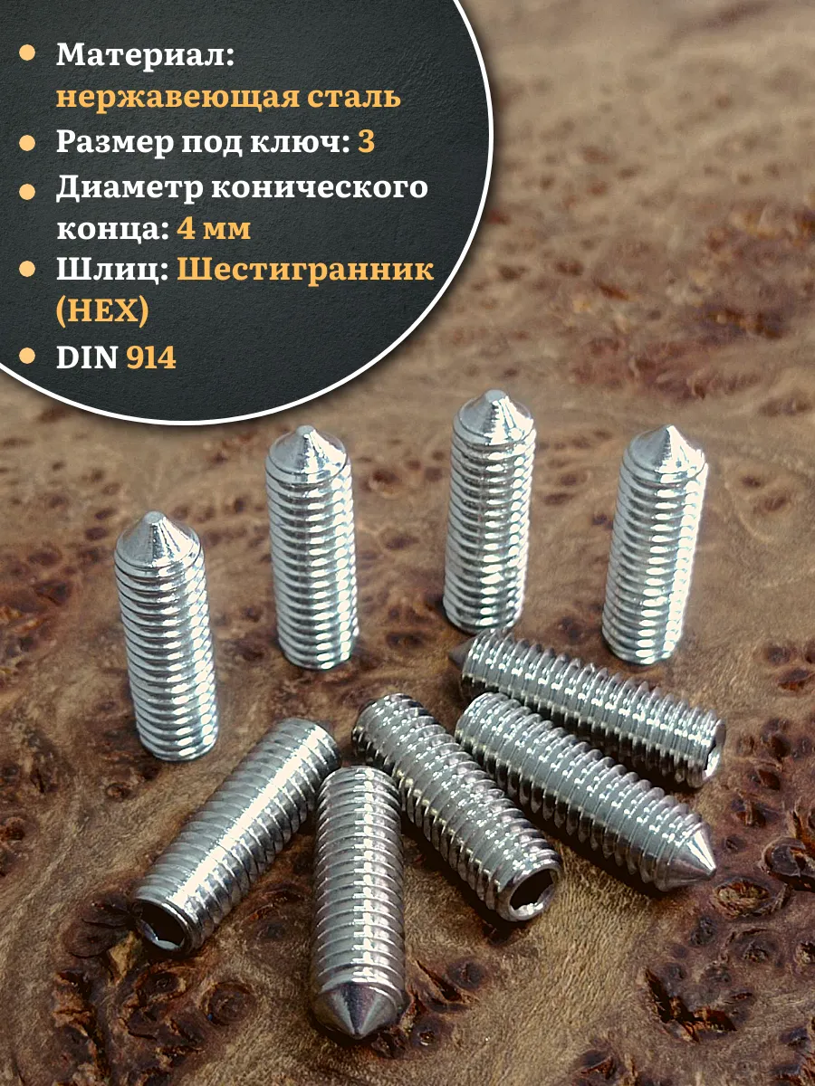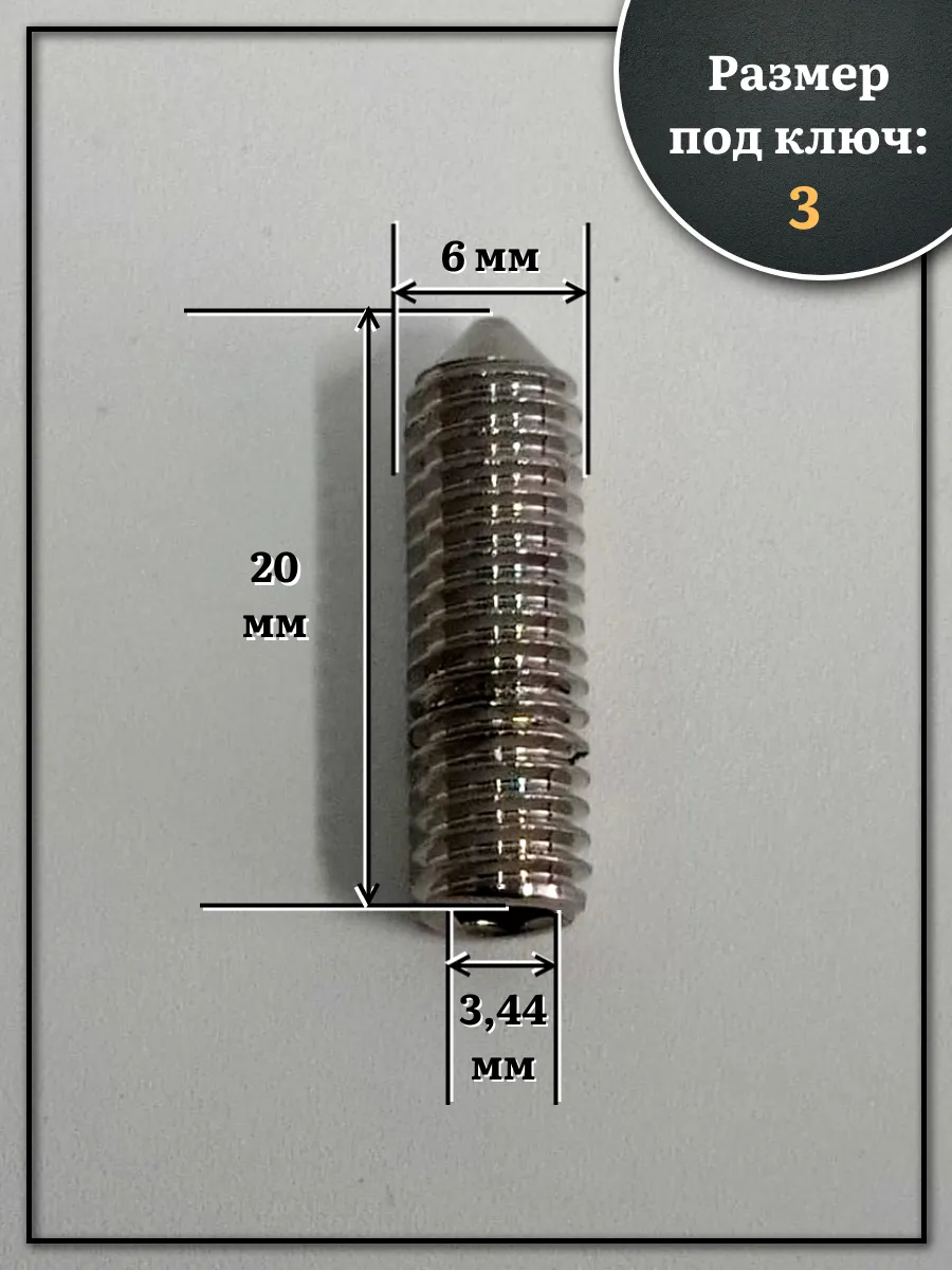 | Винт установочный нержавеющий М6х20 DIN914 (гужон), 50 шт. | МК18628ф50 | 1 шт. |