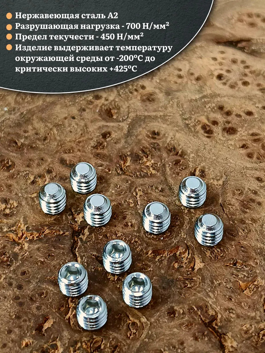 Винт установочный нержавеющий М6х5 DIN913 (гужон), 10 шт.