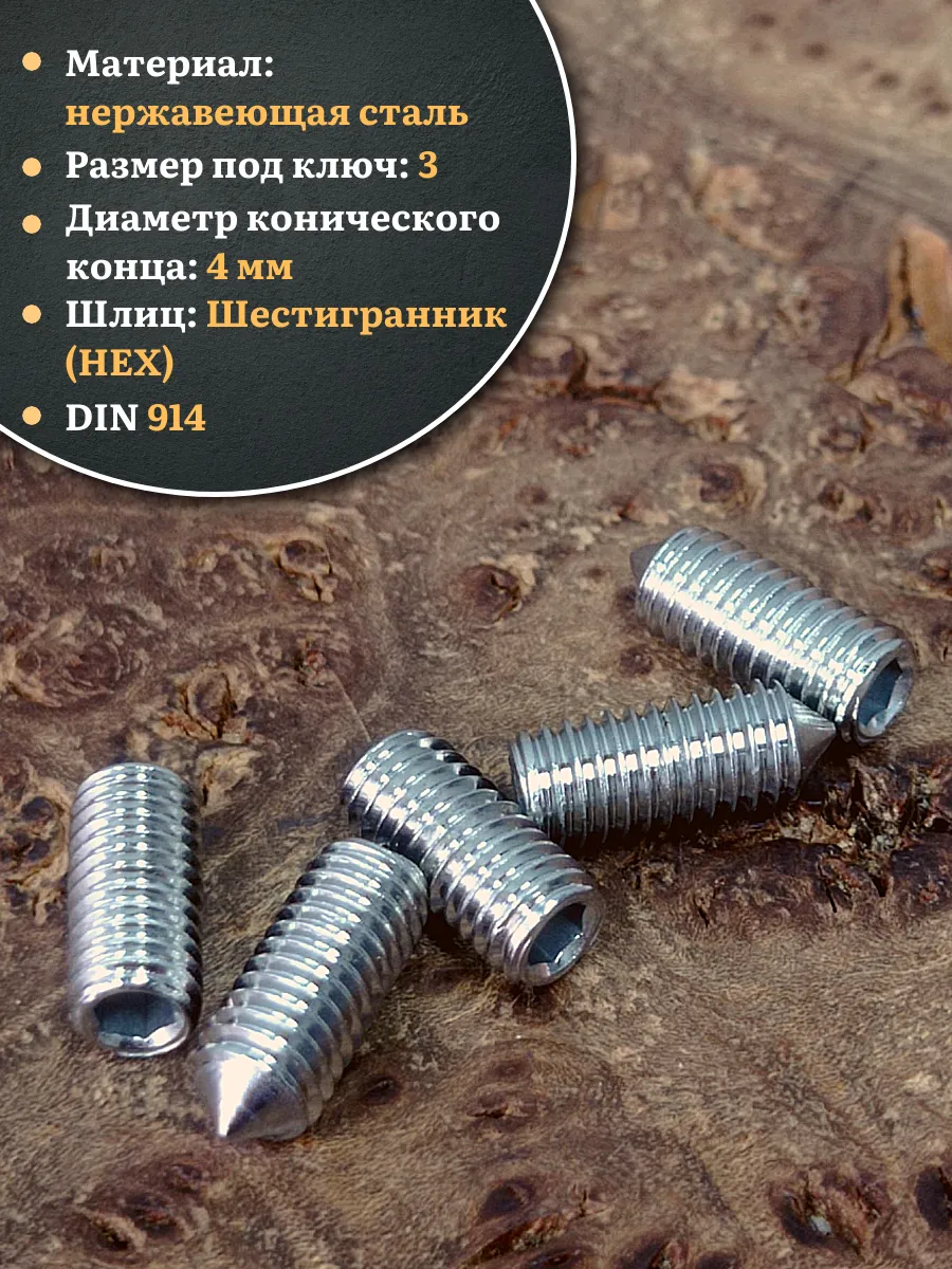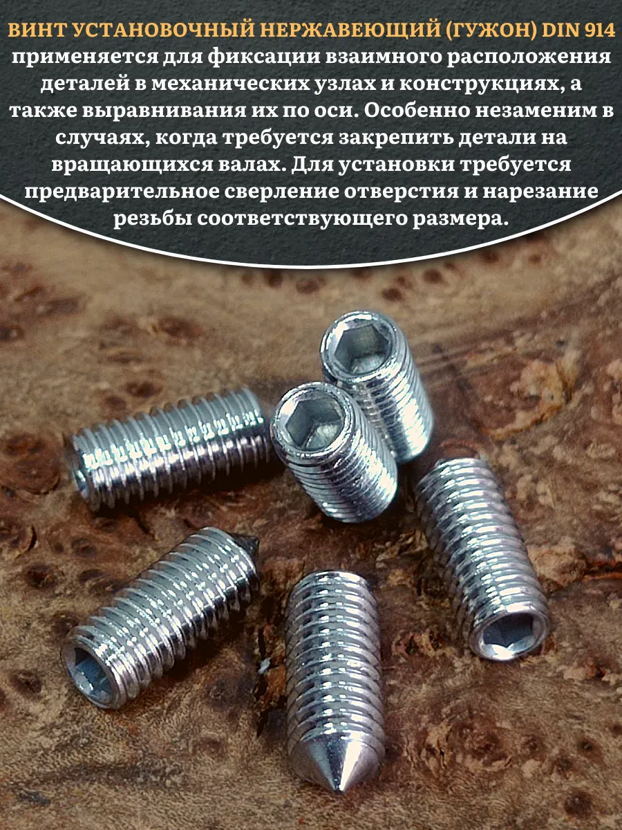 | Винт установочный нержавеющий М6х8 DIN914 (гужон), 10 шт. | МК18573ф10 | 1 шт. |