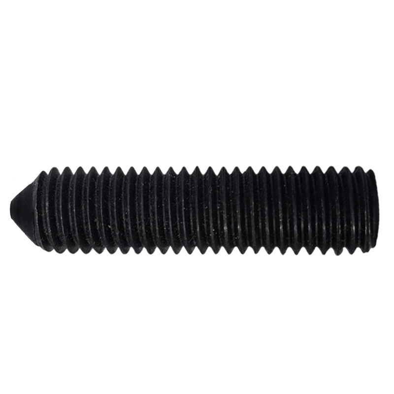Винт установочный DIN 914 - винт установочный с полной метрической резьбой, с острым концом используется для соединения элементов конструкций в машиностроении, приборостроении и прочих промышленно-производственных отраслях совместно с гайками, шайбами соответствующих размеров. Корпус крепежа полностью выполнен в виде резьбы и, проходя через гнездо в детали, упирается в него на всю свою длину, что повышает надежность сцепления. Нажимной кончик предназначен для повышения устойчивости фиксации.