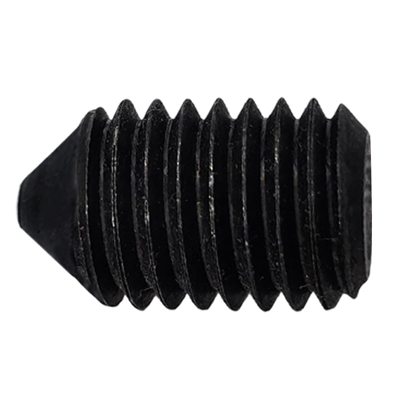 Винт установочный DIN 914 - винт установочный с полной метрической резьбой, с острым концом используется для соединения элементов конструкций в машиностроении, приборостроении и прочих промышленно-производственных отраслях совместно с гайками, шайбами соответствующих размеров. Корпус крепежа полностью выполнен в виде резьбы и, проходя через гнездо в детали, упирается в него на всю свою длину, что повышает надежность сцепления. Нажимной кончик предназначен для повышения устойчивости фиксации.