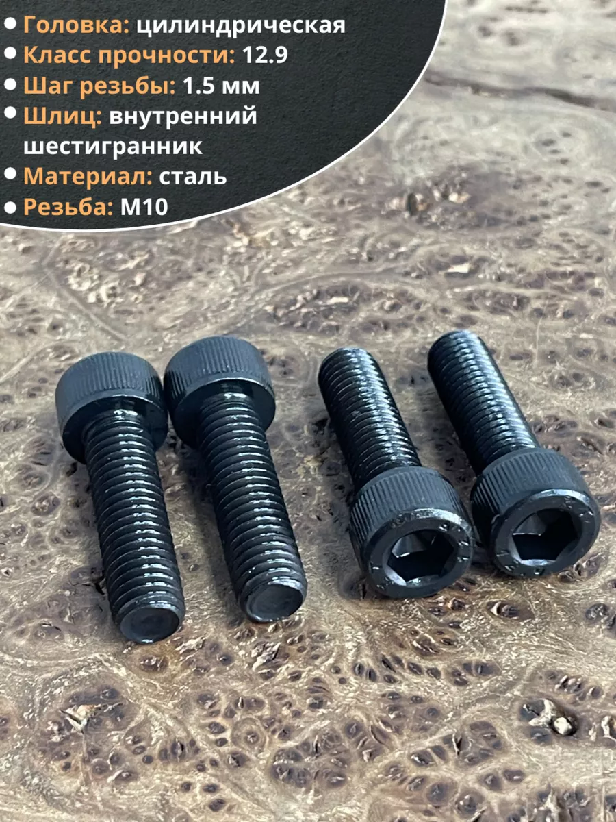Винт высокопрочный ПР М10х35 мм к.п.12.9 черный DIN912, 10 шт.