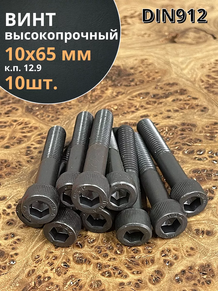 Винт высокопрочный НР М10х65 мм к.п.12.9 черный DIN912, 10 шт.