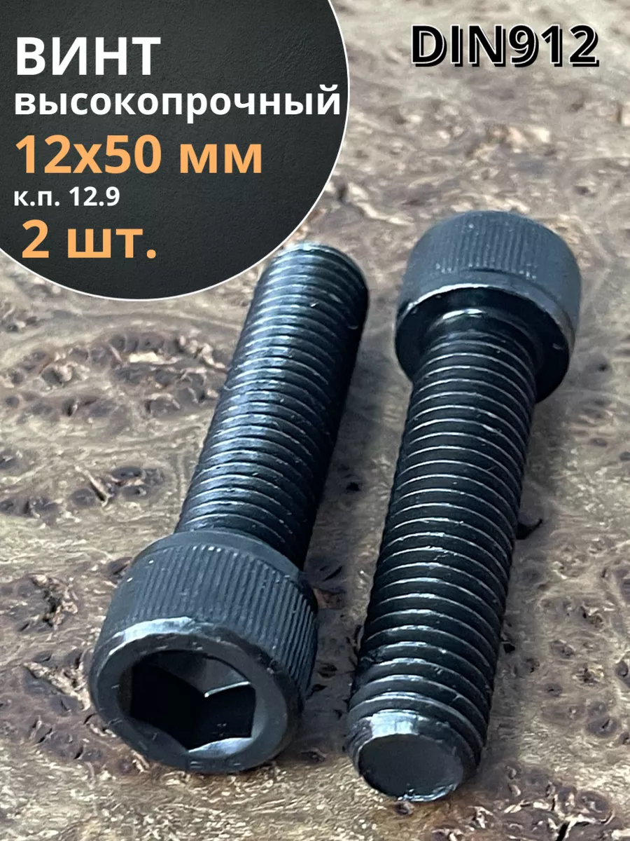 Винт высокопрочный ПР М12х50 мм к.п.12.9 черный DIN912, 2 шт.