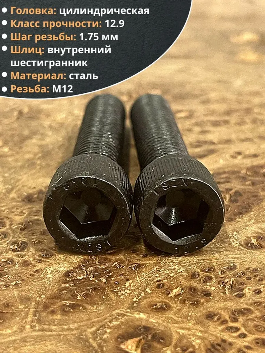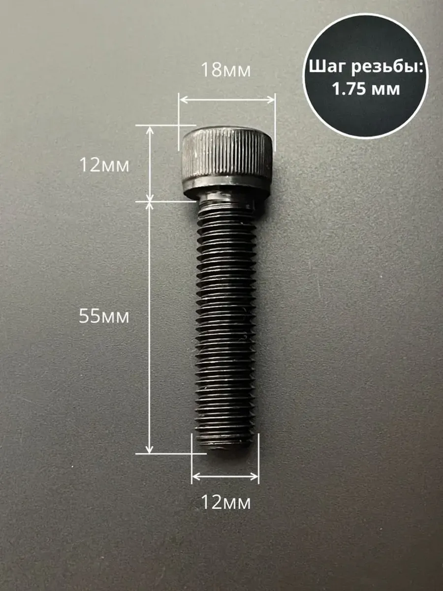 Винт высокопрочный ПР М12х55 мм к.п.12.9 черный DIN912, 2 шт.